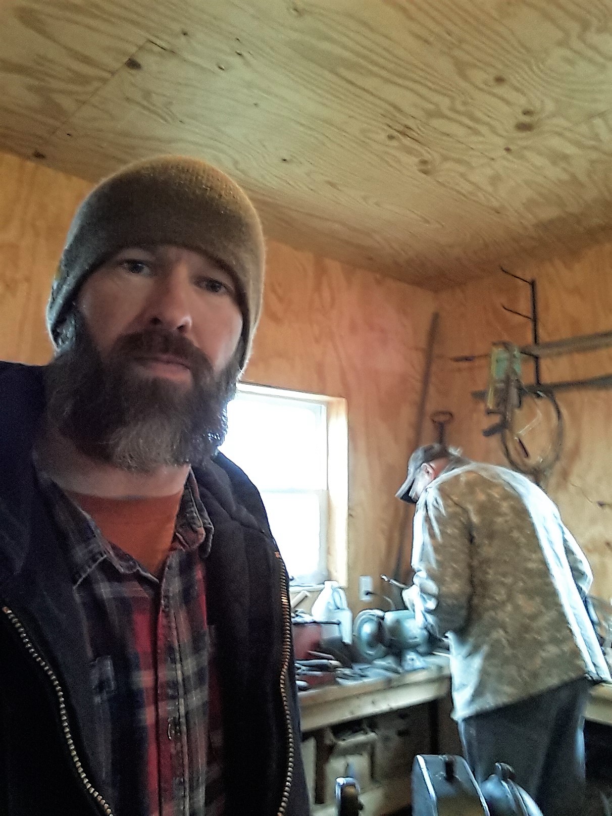 This year, we ask TAAP teams if they could share quick winter progress reports with “selfies.” Apprentice Keith Whiteside really came through for our request, sending along photos that illustrate his progress in learning to forge gigs at Ray Joe Hasting’s side.